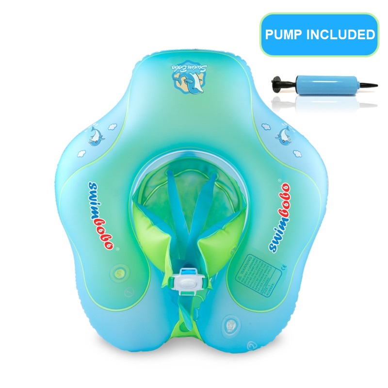 Simple and convenient to use: the Swimbobo baby swimming float has four inflatable chambers. The float is easy to inflate and deflate, making it convenient to use and transport. The set includes a manual hand pump.