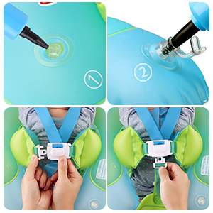 Warning: It is important to inflate the air chamber first, then inflate the airbag, otherwise, the baby float might rollover when in use.